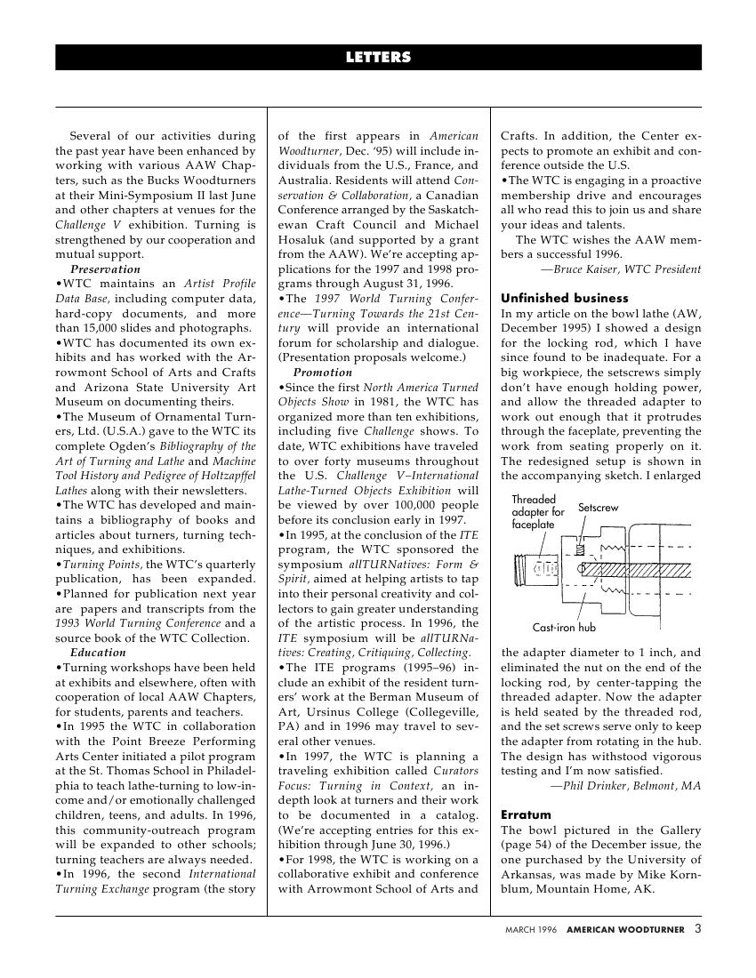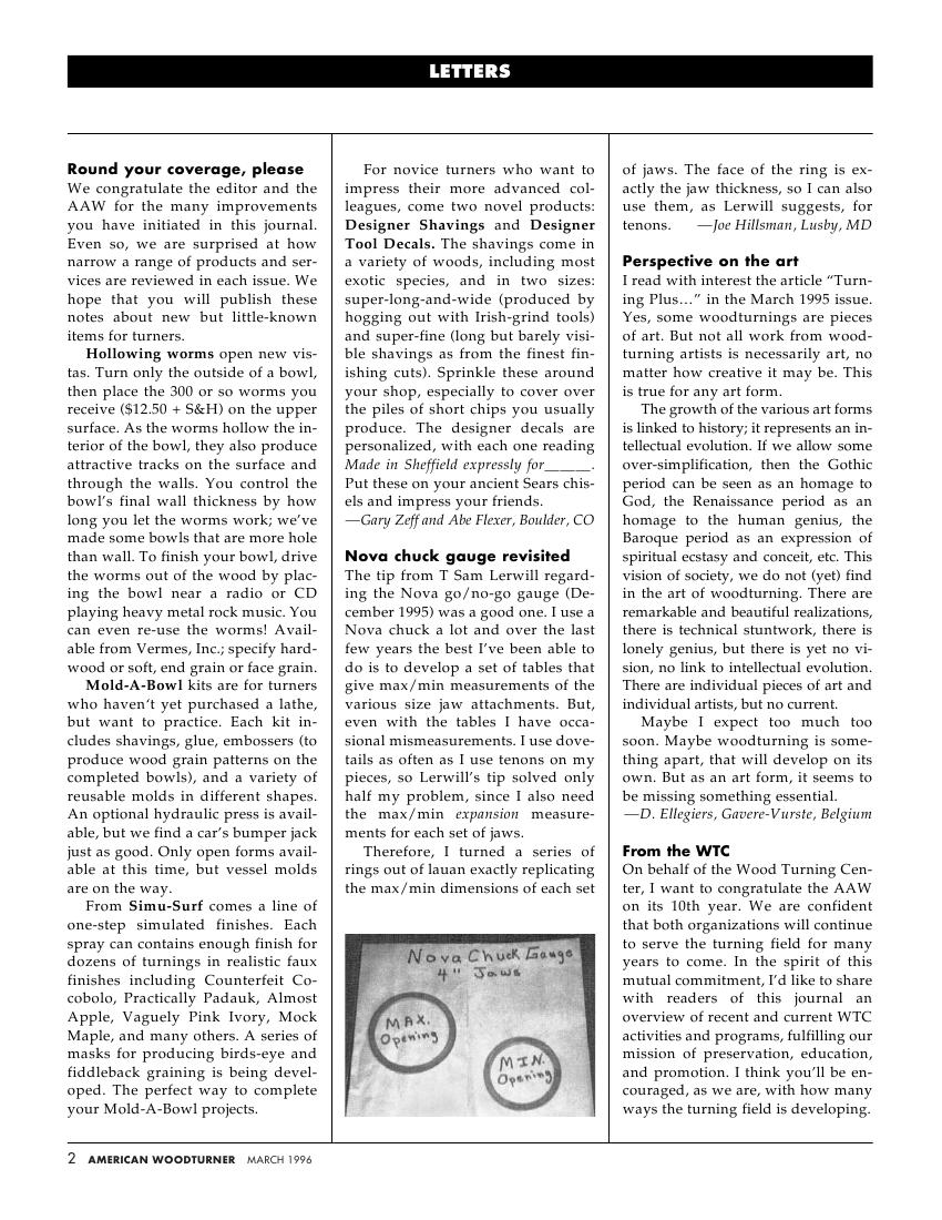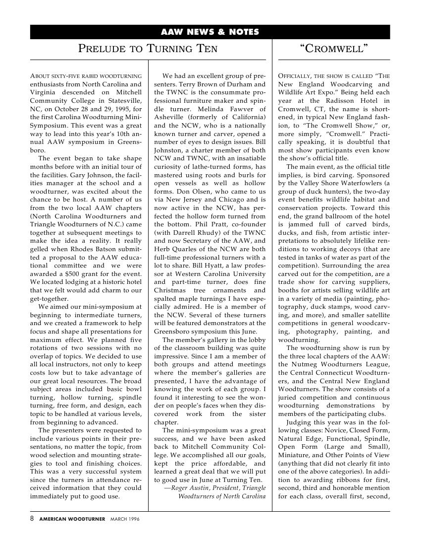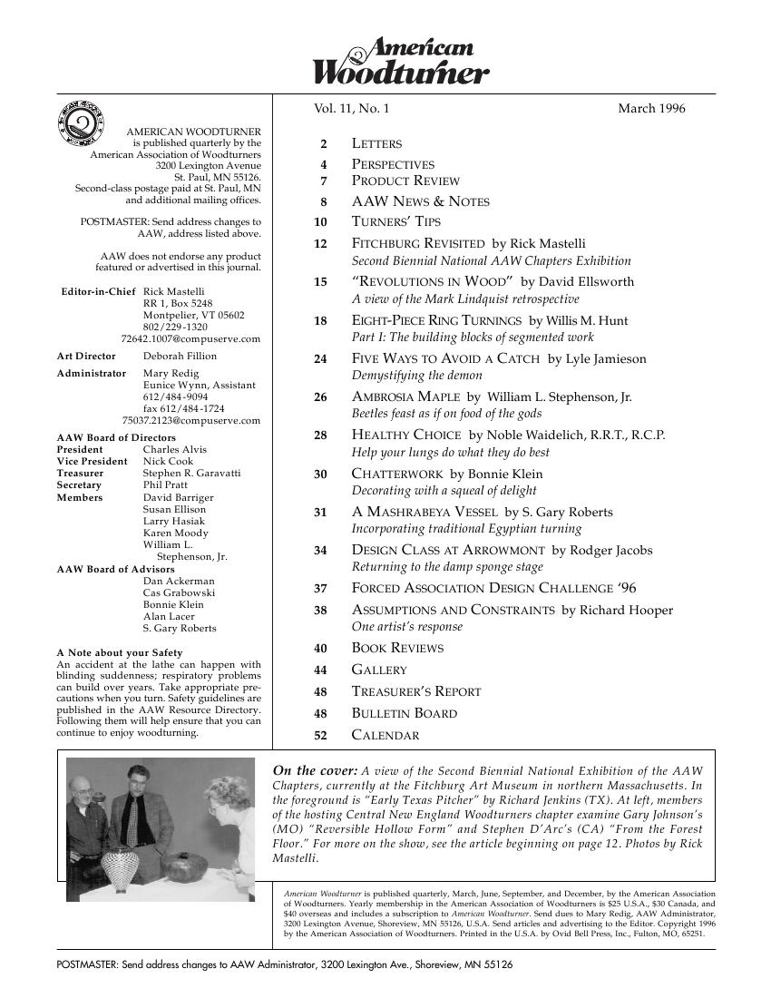 American woodturner 11-01March 1996 1周前 American woodturner 3 试看前9页结束 点击下边链接查看PDF下载地址: 此内容查看价格为1金币,请先登录本资源用于学习,禁止商业用途,如有侵犯作者,请与本站联系。 0