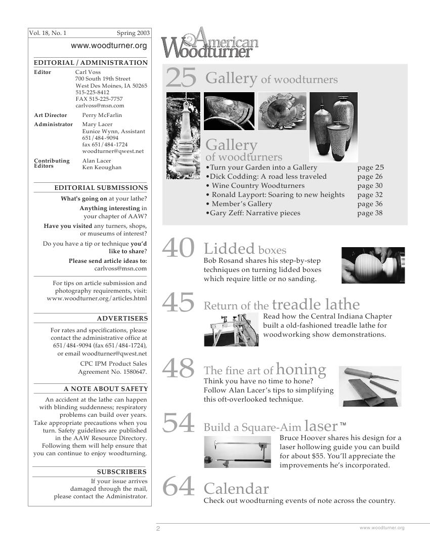 American woodturner 18-01Spring 2003 7天前 American woodturner 3 试看前9页结束 点击下边链接查看PDF下载地址: 此内容查看价格为1金币,请先登录本资源用于学习,禁止商业用途,如有侵犯作者,请与本站联系。 0