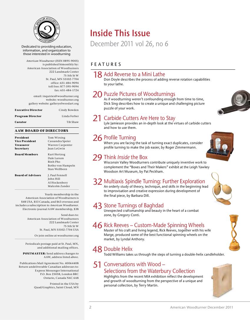 American woodturner 26-06December 2011 7天前 American woodturner 3 试看前9页结束 点击下边链接查看PDF下载地址: 此内容查看价格为1金币,请先登录本资源用于学习,禁止商业用途,如有侵犯作者,请与本站联系。 0